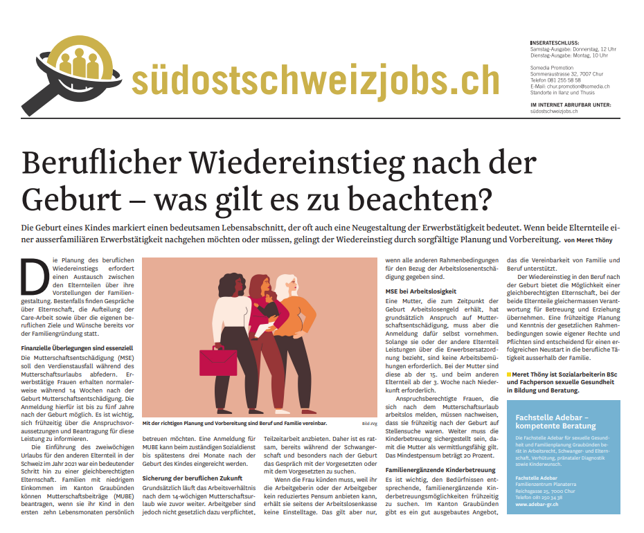 Meret Thöny erklärt in ihrem Artikel in der Südostschweiz, wie der Wiedereinstieg in eine ausserfamiliäre Erwerbstätigkeit gelingt:
