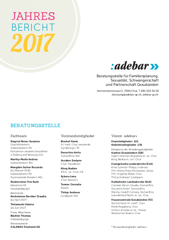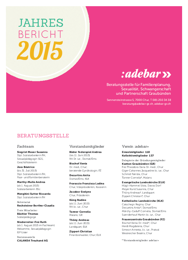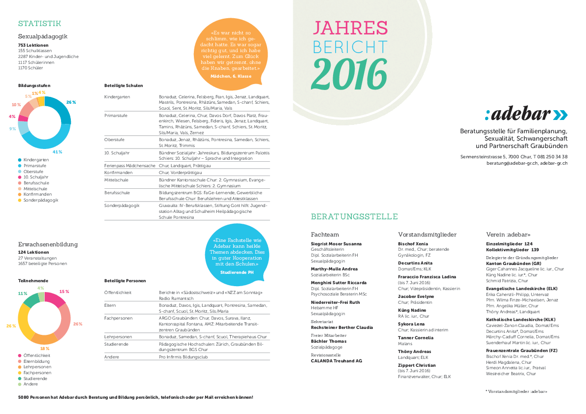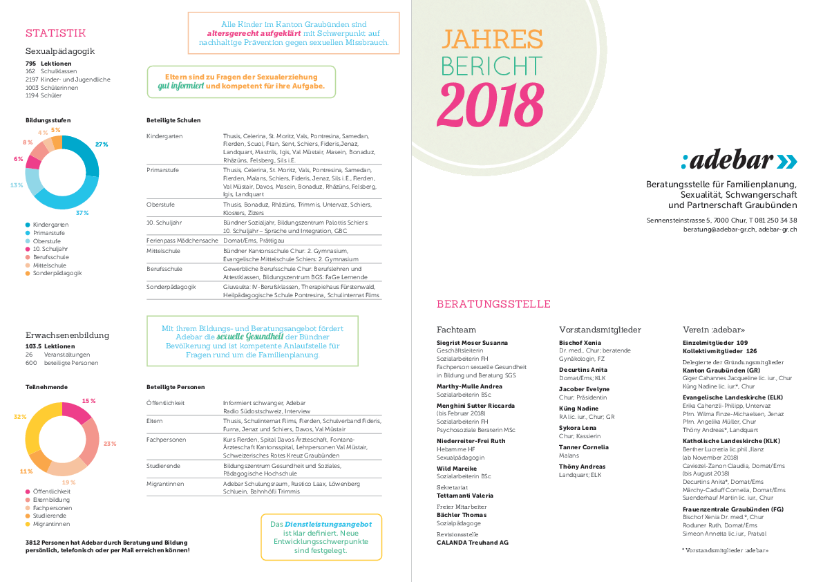 Der Verein nimmt diese Aufgaben durch Beratungen (persönlich, telefonisch oder per E-Mail), durch Sexualpädagogik in den Schulen des Kantons sowie durch Erwachsenen- bzw. Elternbildung wahr.